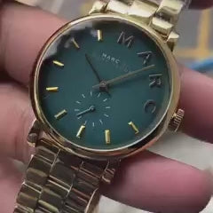 Elevate your style with the Marc Jacobs MBM3245 Baker ladies watch featuring a stunning green dial in a luxurious gold-tone stainless steel case and bracelet, blending functionality with luxury.