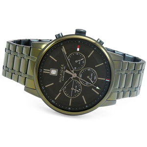 Discover the Tommy Hilfiger Men's Watch 1791634 at Watch & Watch. Featuring a 44mm green stainless steel case, matching bracelet with push-button deployment clasp, and a bold black dial. Powered by reliable quartz movement and water-resistant up to 50 metres, this casual timepiece blends modern design with everyday functionality.